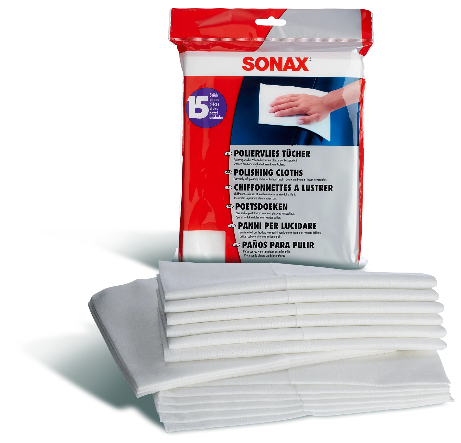 15 extremely soft cloths. The characteristics of this high-quality soft cloth do not change even when used with solvents. Also, the structure of the cloth fabric ensures the paintwork products are fully utilised.