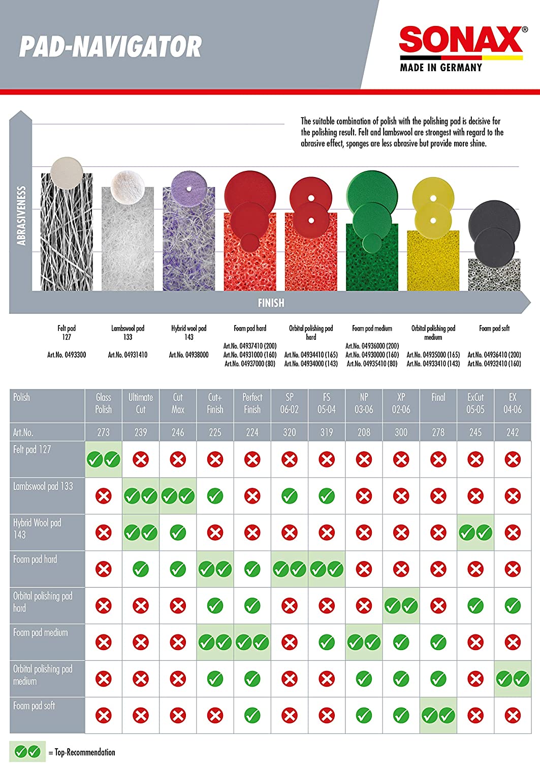 SONAX is known for performance & efficiency - That's why our cutting & finishing compounds have an easy wipe feature for faster processing. Additionally, Ultimate Cut will not stain trims, plastics & rubber. This is because the compound is water based.