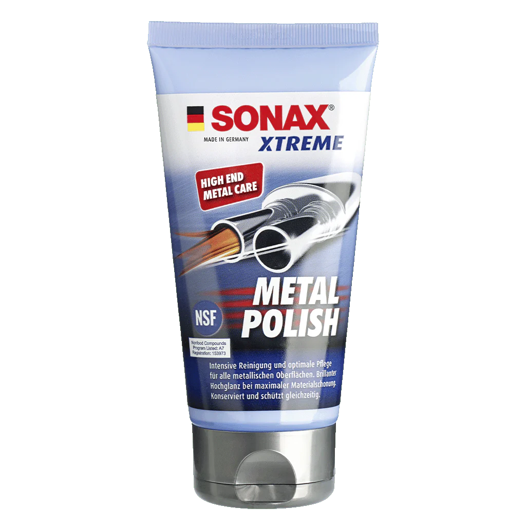 SONAX Metal Polish is the ultimate solution for restoring and maintaining crisp looking metals on your vehicle. It is specially formulated for all types of metal, from stainless steel to chrome to brass to copper, you name it! It effortlessly removes tarnish, oxidation, and stubborn residues, providing a mirror finish that enhances the crisp look of your prized possession.